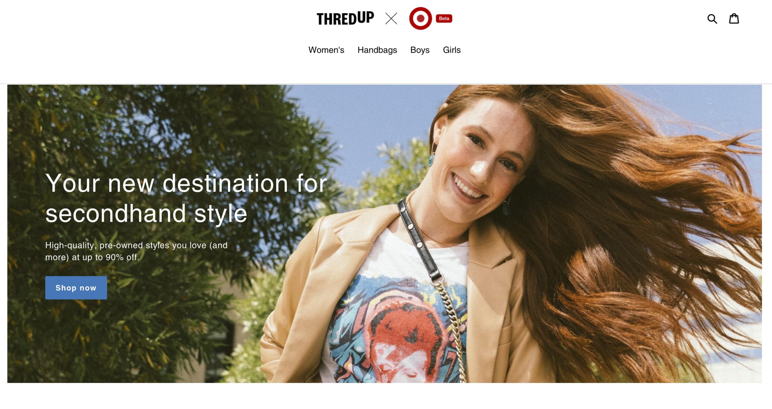 The big-box retailer confirmed Friday that it launched a page on ThredUp’s website in late March that includes listings of women’s and kids’ apparel, along with accessories. Some items are from Target’s private labels, such as kids’ clothing brand Cat & Jack, or its limited-time designer collaborations, like one with Lilly Pulitzer in 2015, and others are items from luxury brands carried on ThredUp, curated by Target.